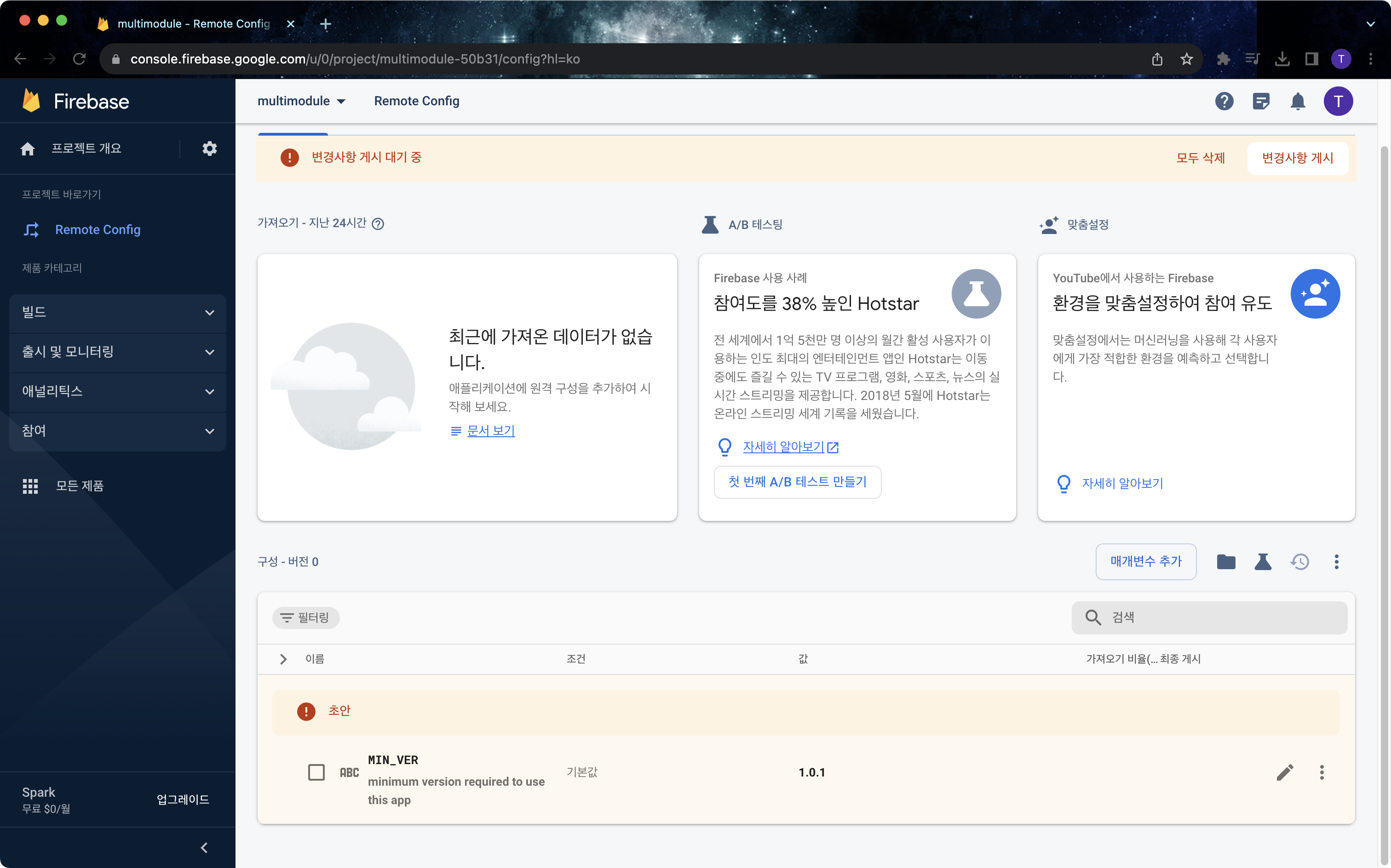 값을 다 추가했으면 변경사항을 게시해 주면 Firebase에서 설정은 끝입니다.