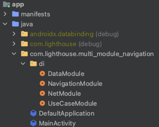 최상위 모듈로 모든 모듈을 알고 있다. 이 프로젝트는 액티비티가 한 개라 최상위에 MainActivity을 넣어놨다.