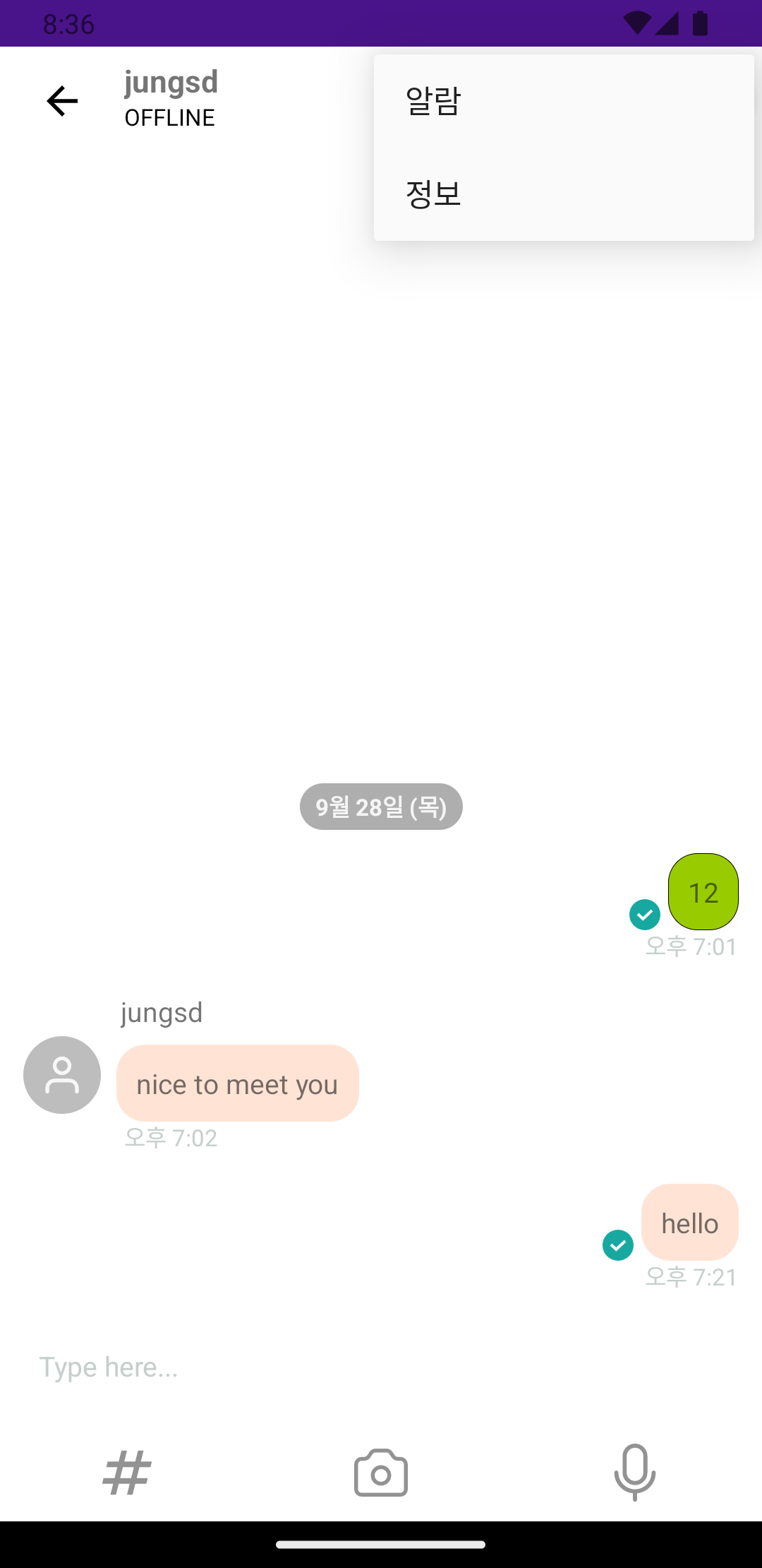 간단하게 시연을 보여드리면 평범한 채팅방 느낌으로