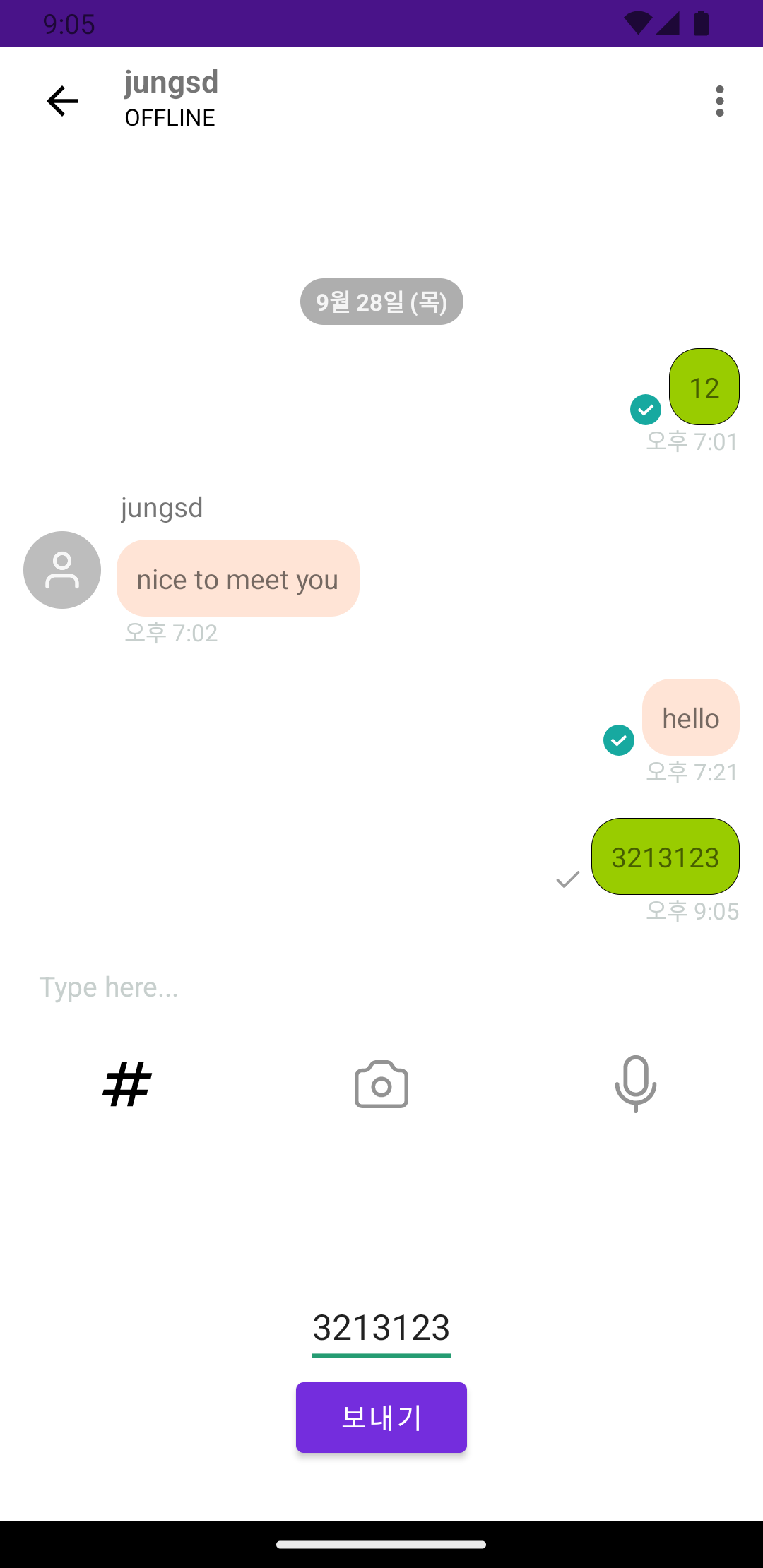 // MessageInputComponent에 클릭 리스너 전달, ViewModel으로 전달받은 숫자 메시지에 변화가 있으면 메시지 전송