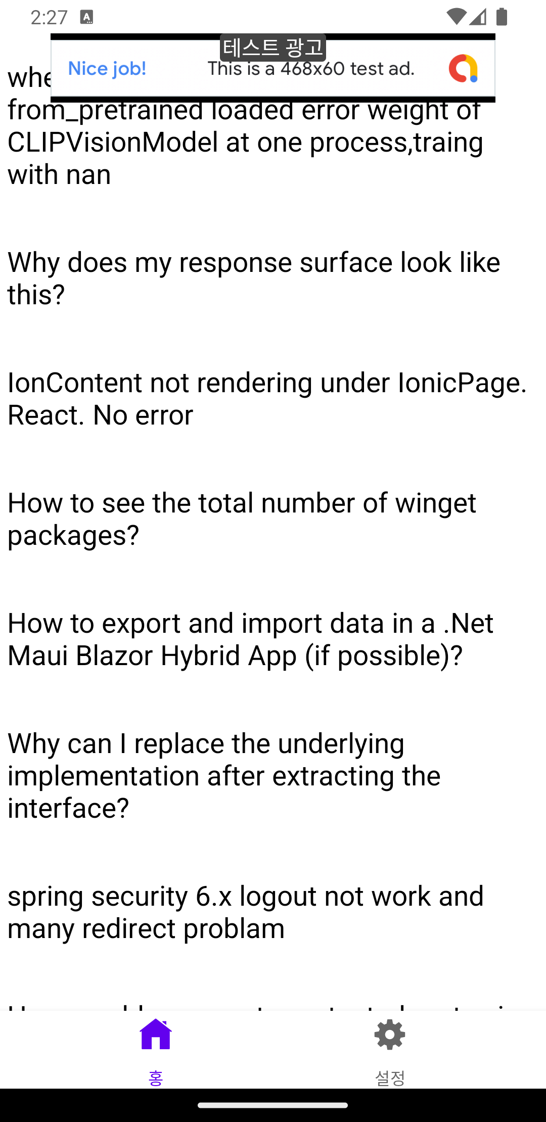 광고와 콘텐츠를 비교하기 위해 빈 QuestionVO의 id에 "ad"를 넣어줬지만 원한다면 index로 광고를 넣을 위치를 파악할 수 있습니다