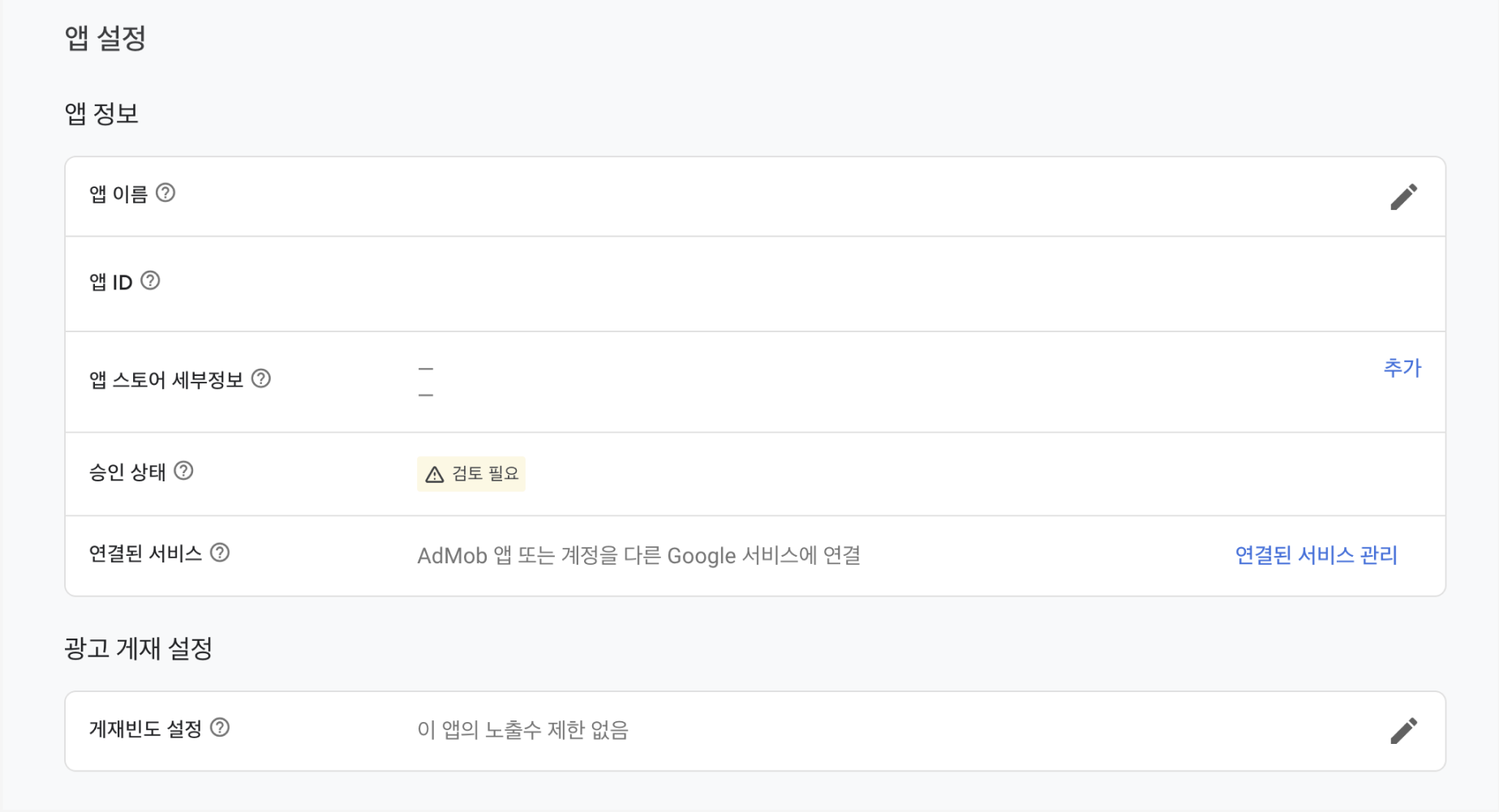 출시할 때는 admob에 앱을 등록한 뒤에 콘솔에 있는 앱 설정에서 앱 ID을 가져오면 됩니다